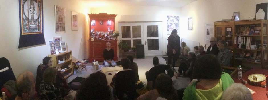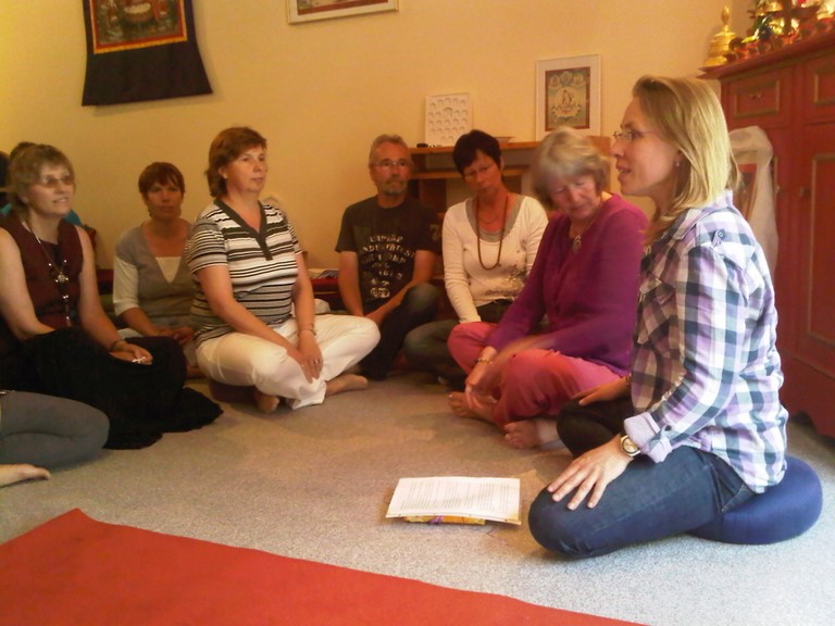 Einmal pro Woche treffen wir uns zur Meditation auf den 16. Karmapa, unseren Hauptlehrer (Lama). Das klingt jetzt ein wenig exotisch, ist es aber nicht. Wir arbeiten in verschiedenen Berufen und versuchen, sie auch in die buddhistische Praxis einzubinden.